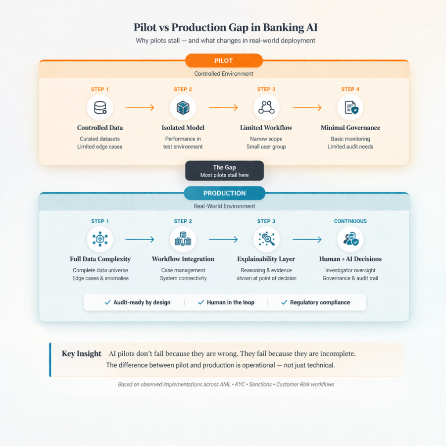 This is how most AI pilots in banking actually fail. Not with a clear failure point, but with a gradual loss of relevance as they move closer to real-world conditions.